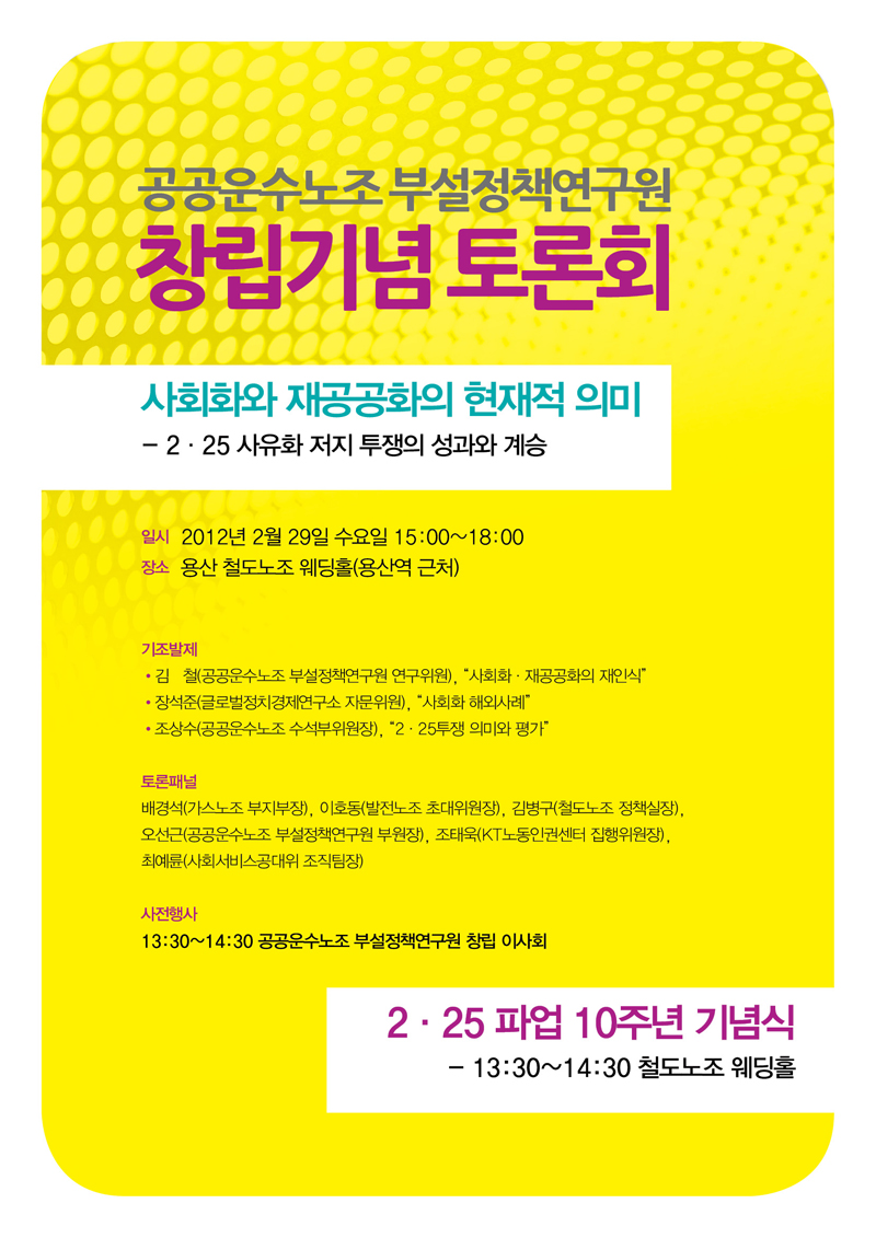 공공운수노조 부설 정책연구원 창립 기념토론회